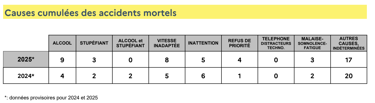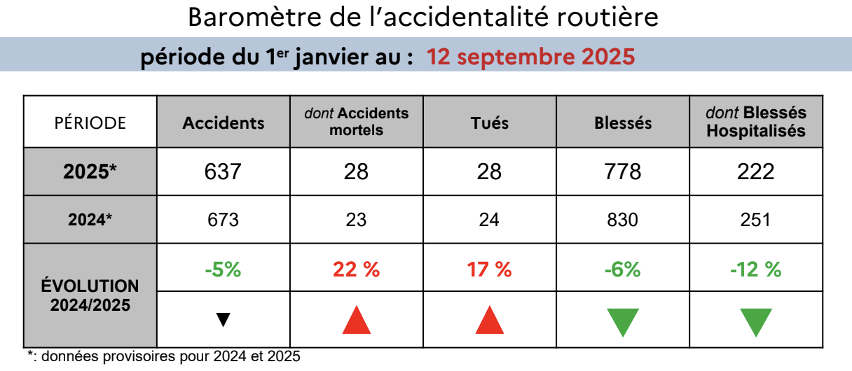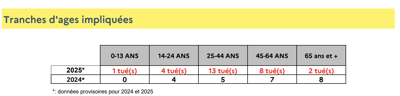 Depuis le début de l'année, le constat est sans appel. Au 12 septembre 2025, le nombre de tués est de 28 personnes (contre 24 en 2024), soit une hausse de 17%.