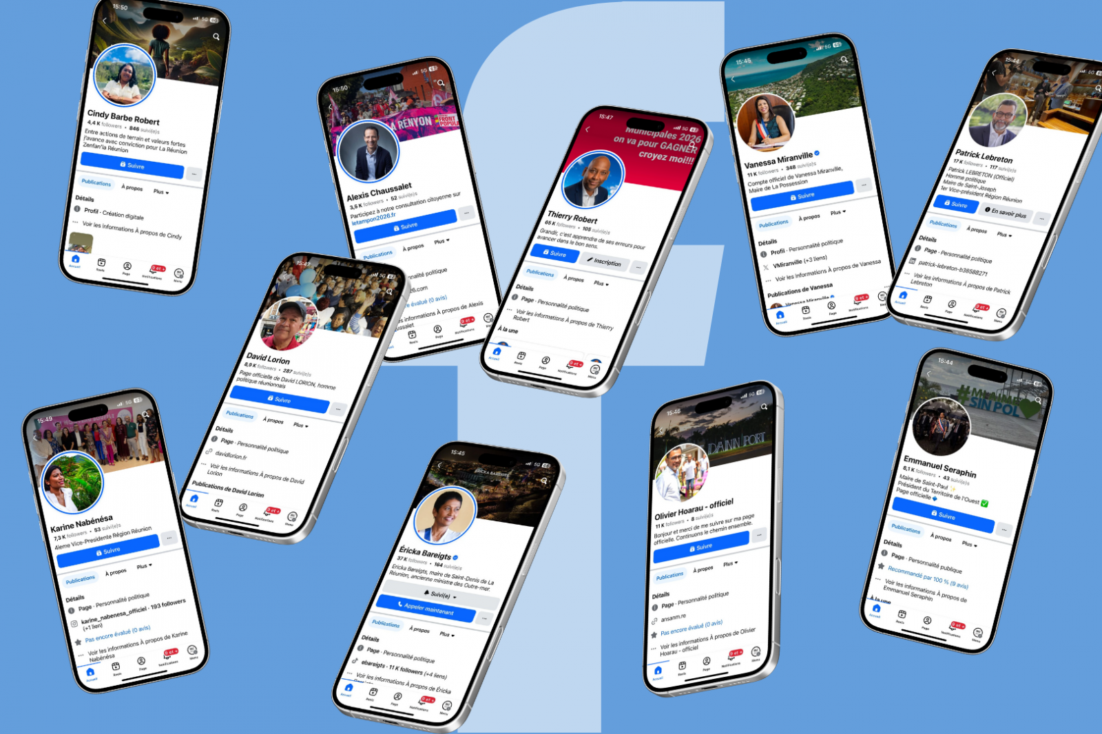 Chez les maires sortants, la majorité des publications relèvent encore de la communication municipale classique. Emmanuel Séraphin, maire de Saint-Paul, enchaîne les posts sur les événements culturels et sportifs à Saint-Paul, Patrick Lebreton, maire de Saint-Joseph, relaie ses interventions médiatiques tandis que Ericka Bareigts, maire de Saint-Denis,Olivier Hoarau, maire du Port, Vanessa Miranville, maire de la Posession, ou encore David Lorion maire de Saint-Pierre, partagent les initiatives et projets structurants de leur commune.