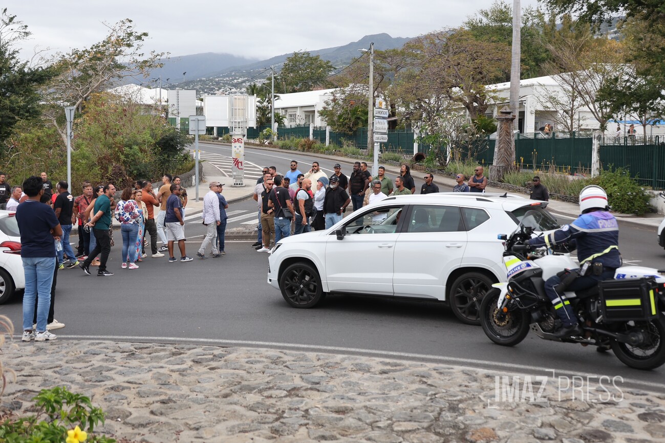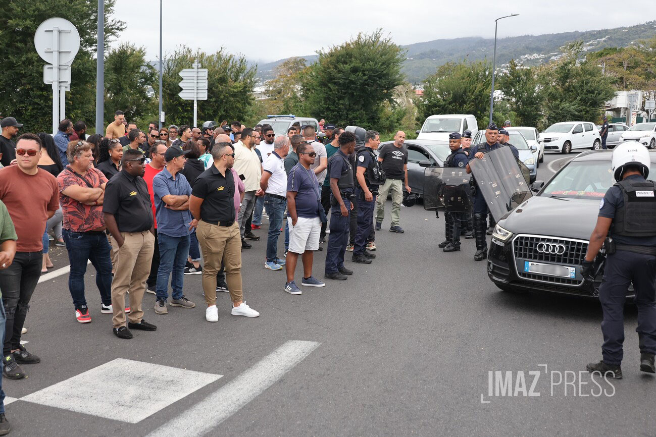 Les taxis sont mobilisés devant la préfecture. La bretelle d’accès au vieux pont de rivière à Saint-Denis est fermée par les forces de l’ordre.