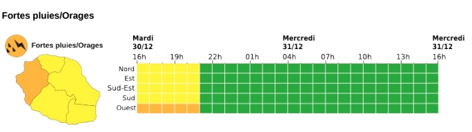Depuis 4h, le nord, l'est et l'ouest de l'île sont en vigilance orages fortes pluies et orages.