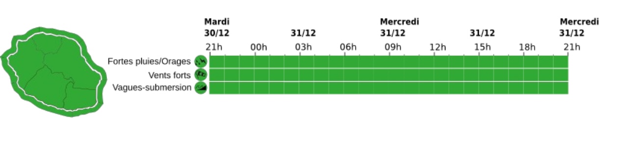• Les vigilances orange et jaune prolongées jusqu'à 21h pour toute La Réunion
