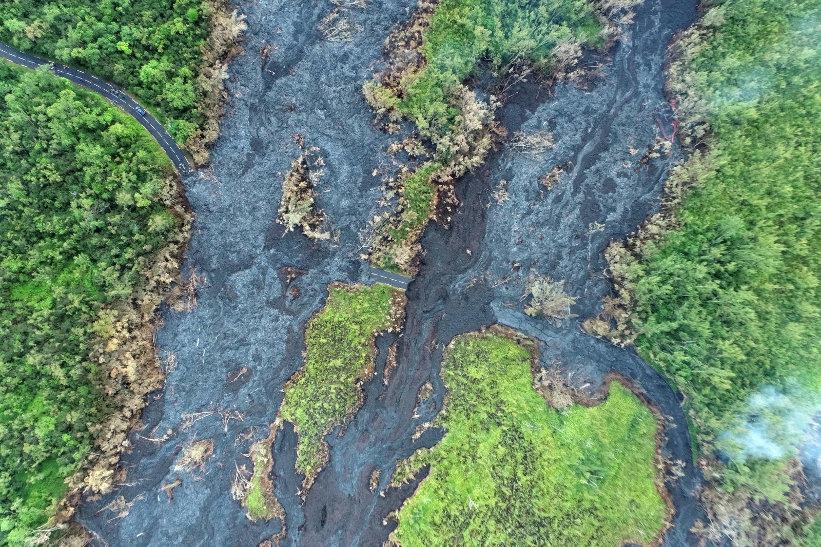 La Direction régionale des routes estime ensuite entre deux semaines et un mois pour commencer les travaux. Ses équipes pourront travailler sur les premiers mètres de lave, là où "une zone de lave est de faible épaisseur".