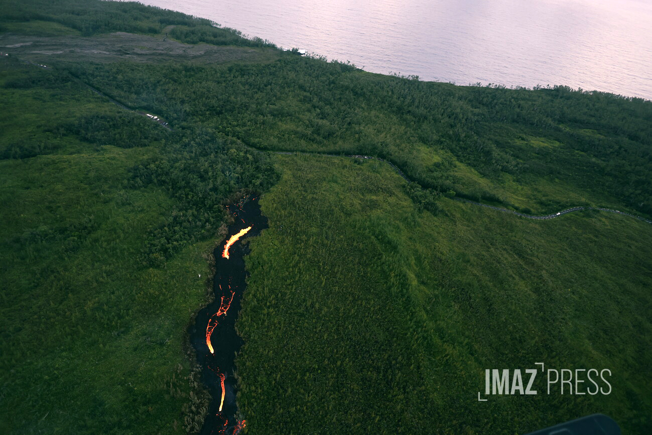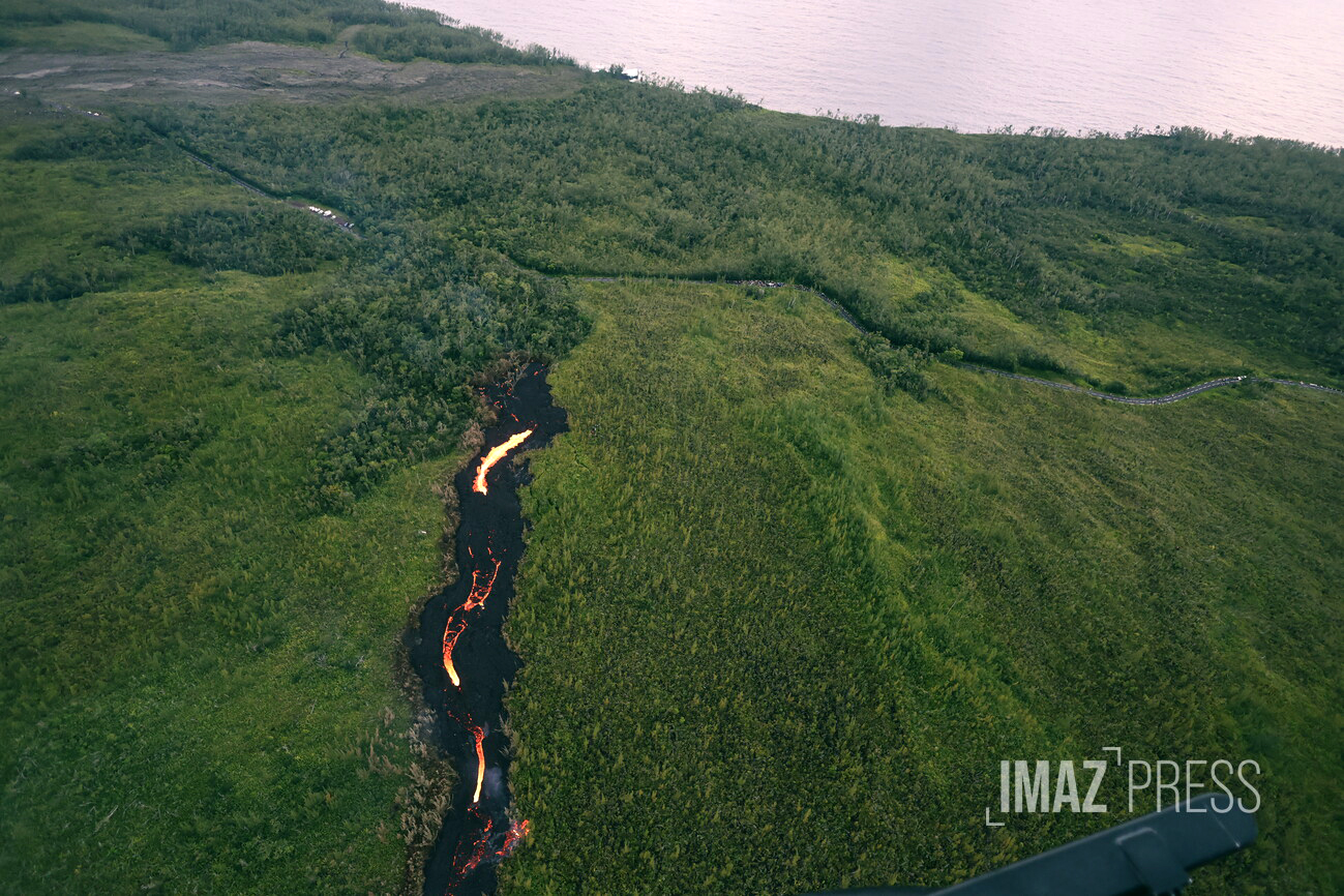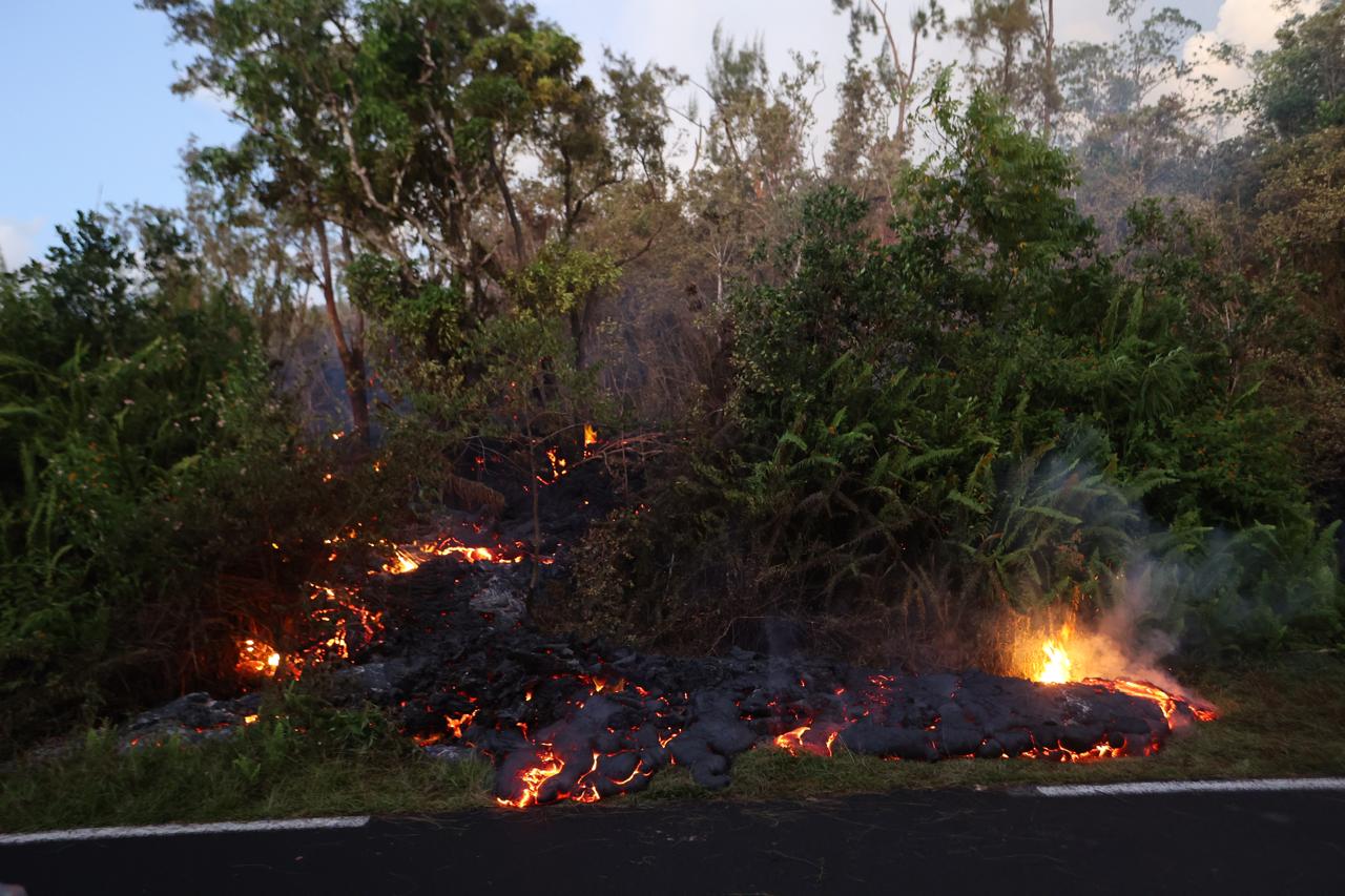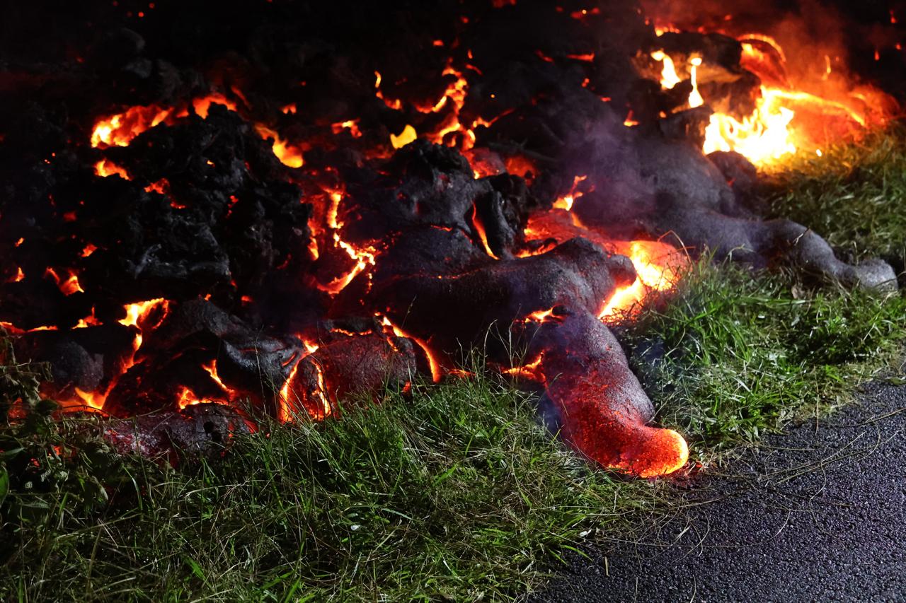 La lave touche frôle le bitume de la RN2