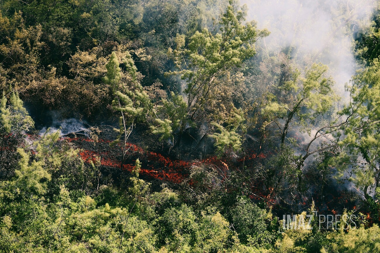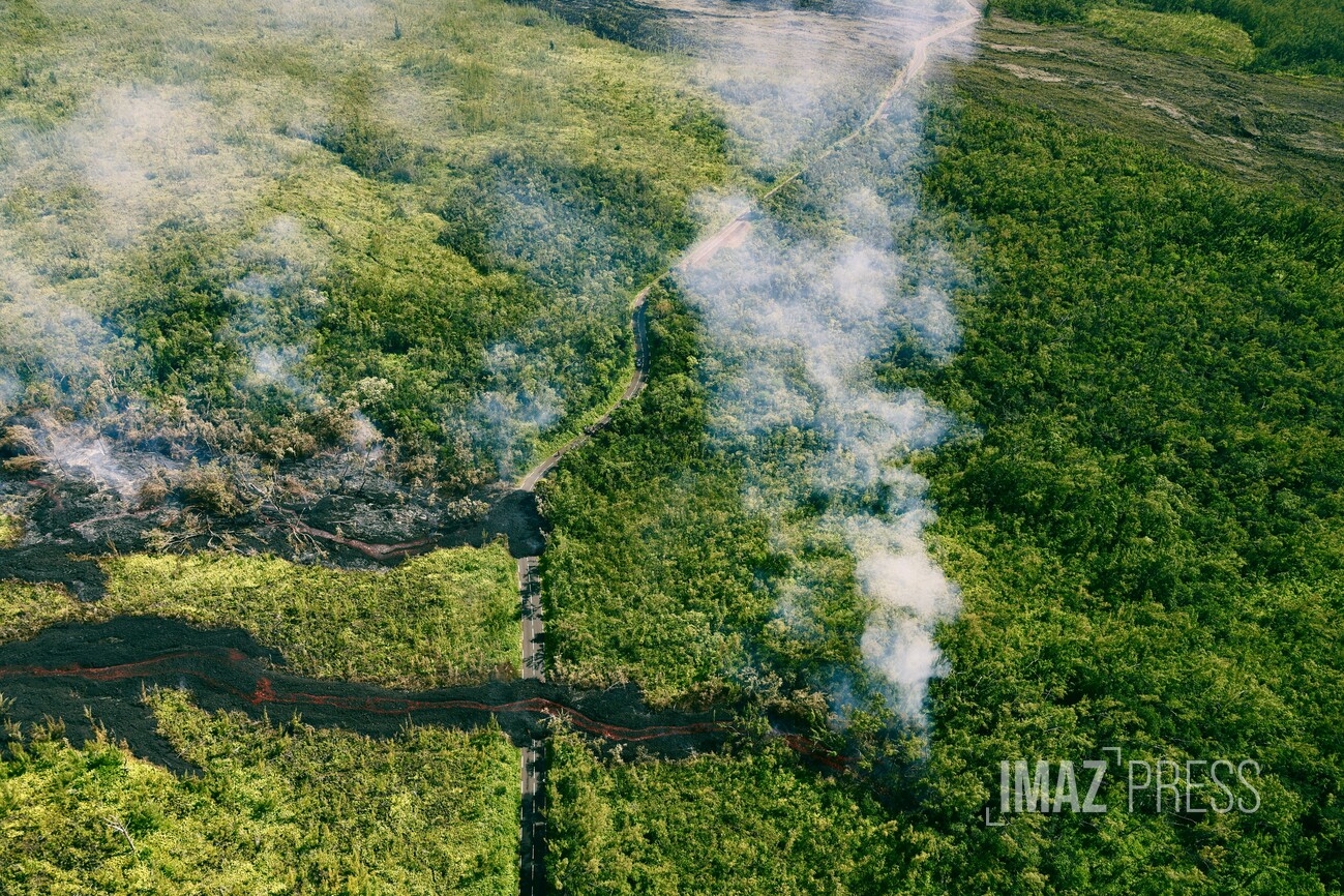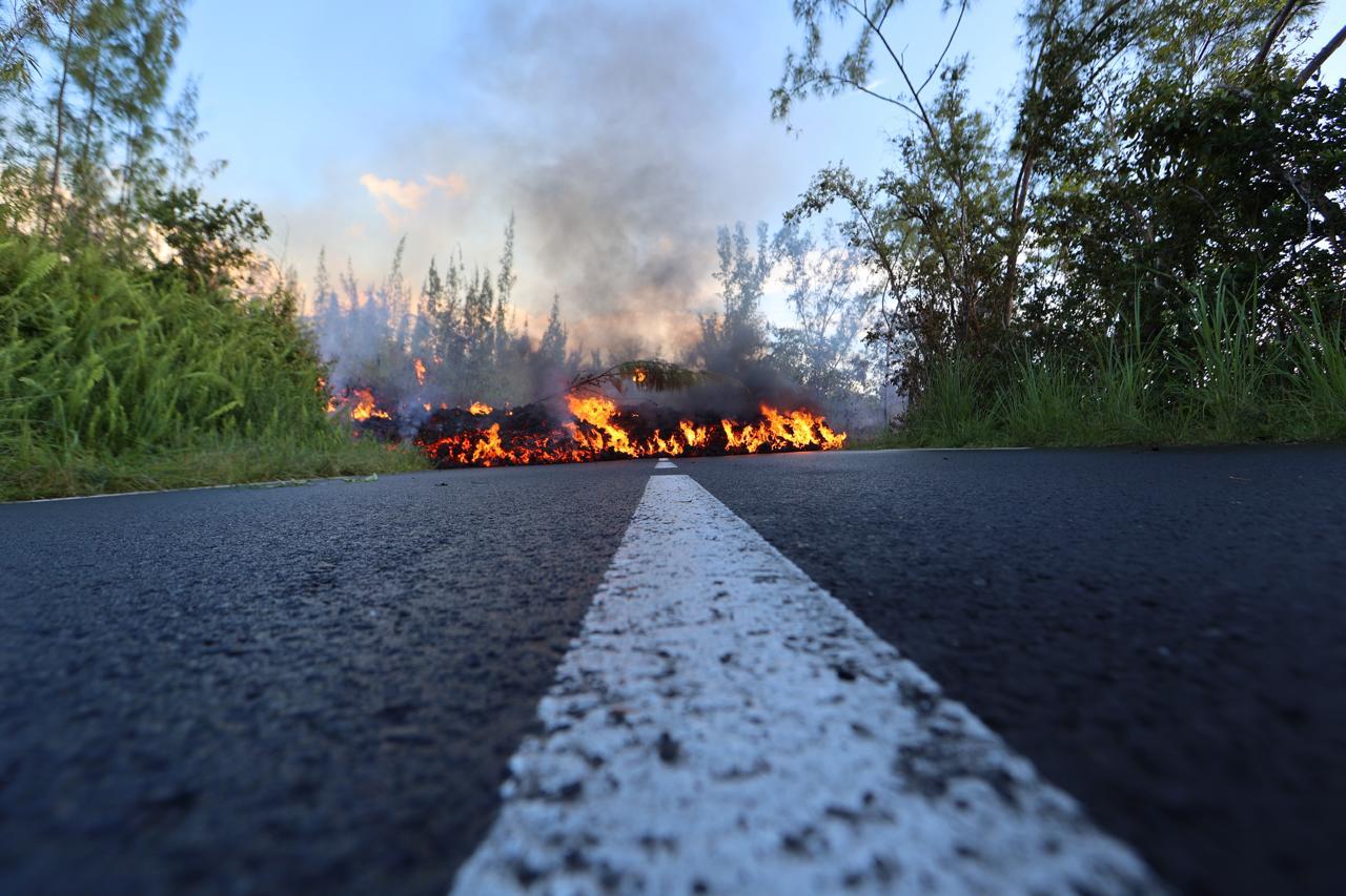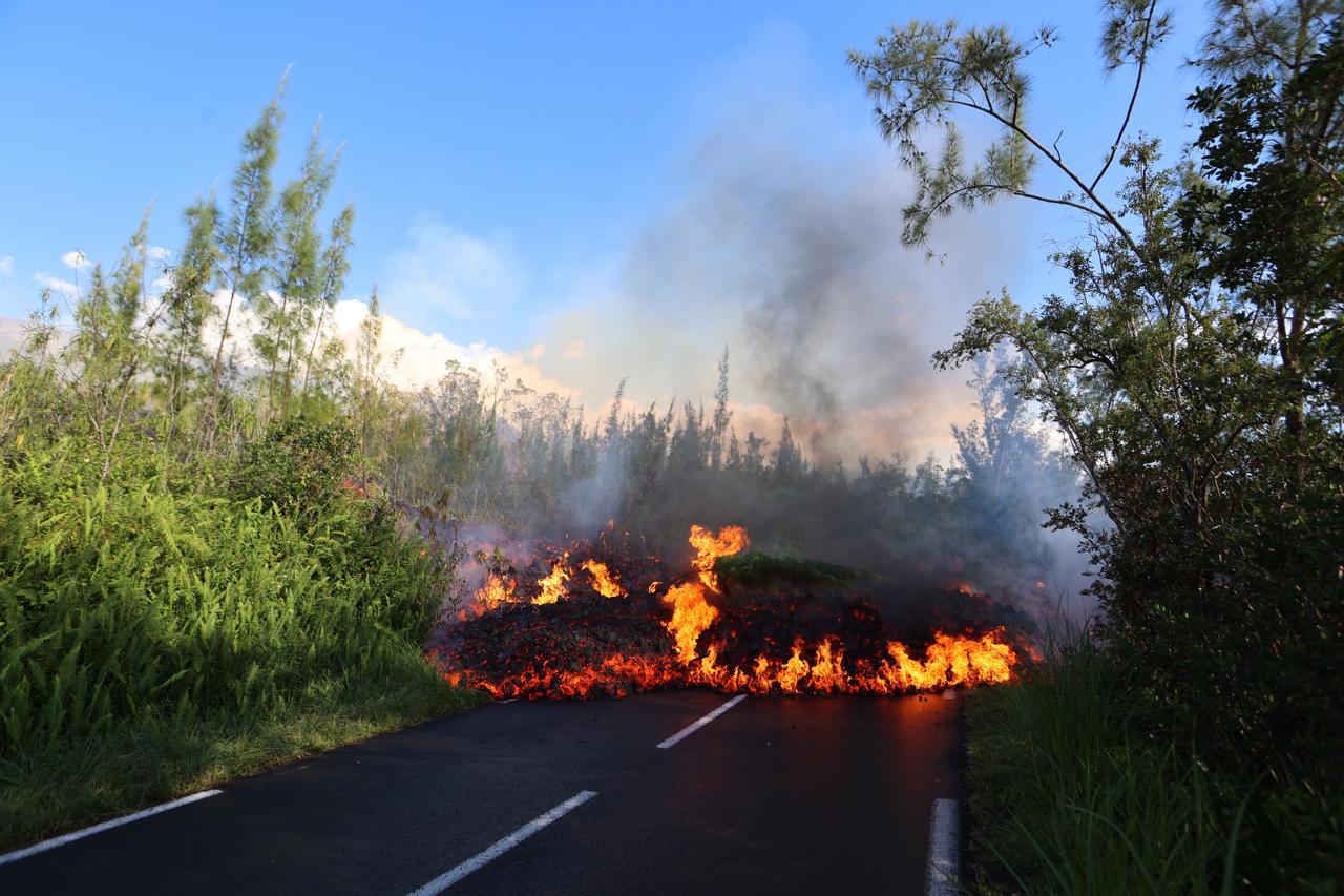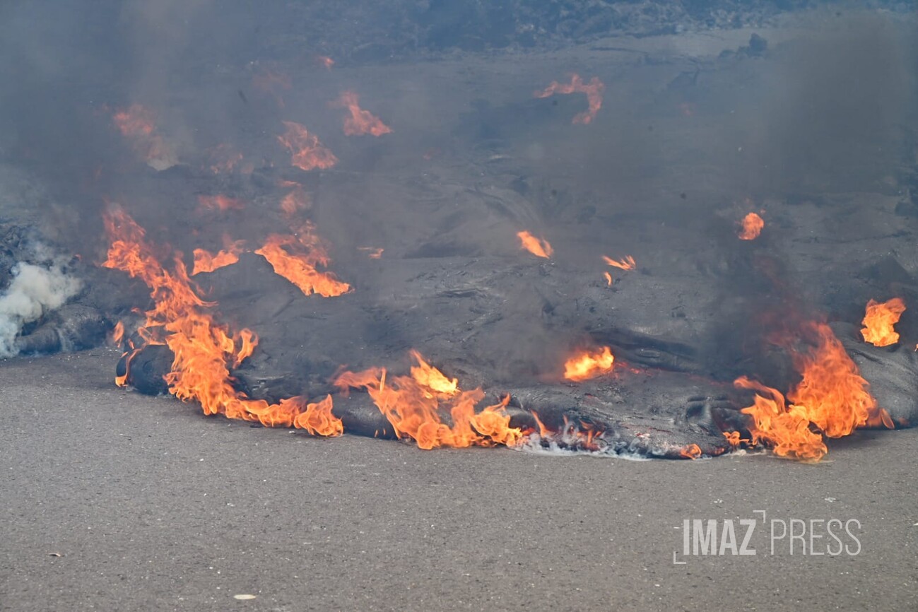 Des flammes, de la fumée... avec des températures affolants les compteurs, la lave en fusion brûle la route nationale 2.