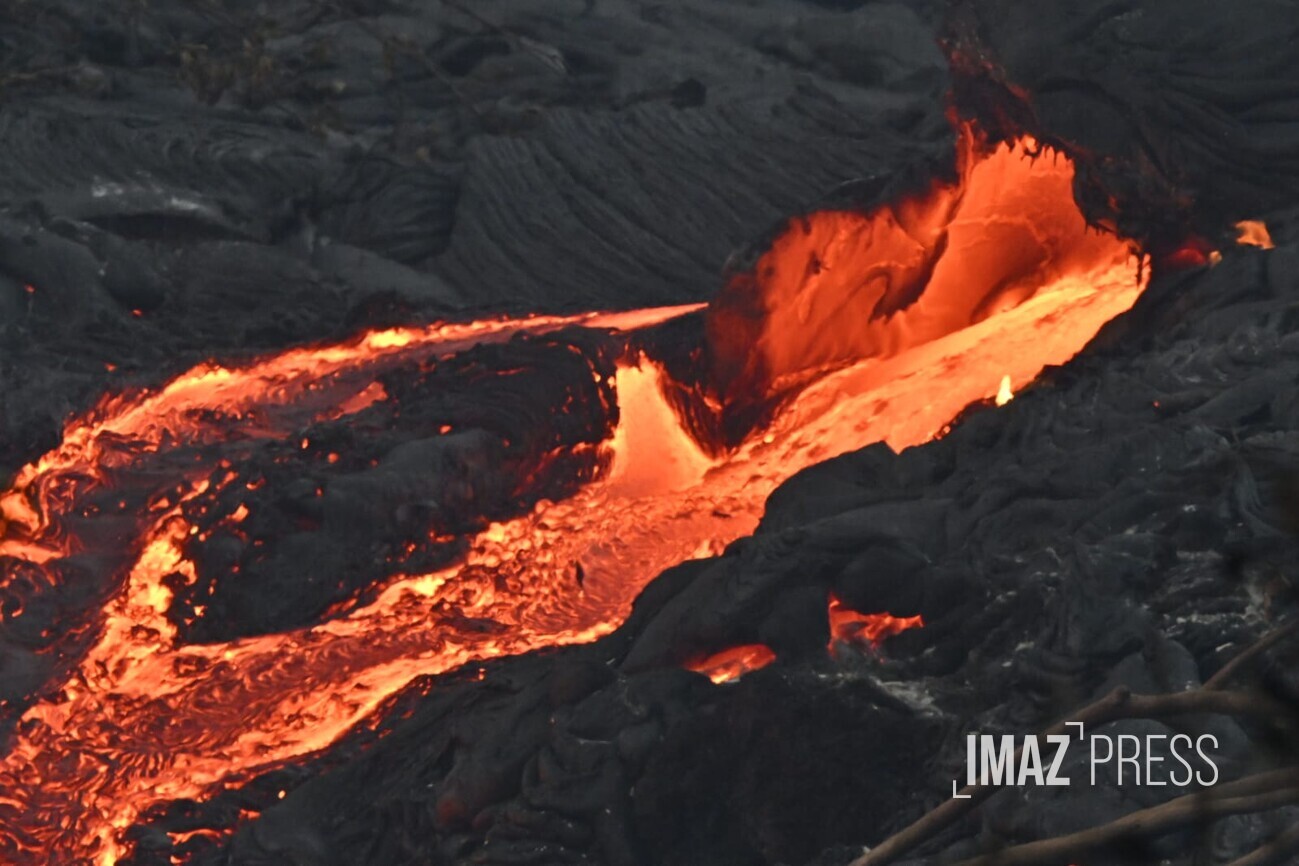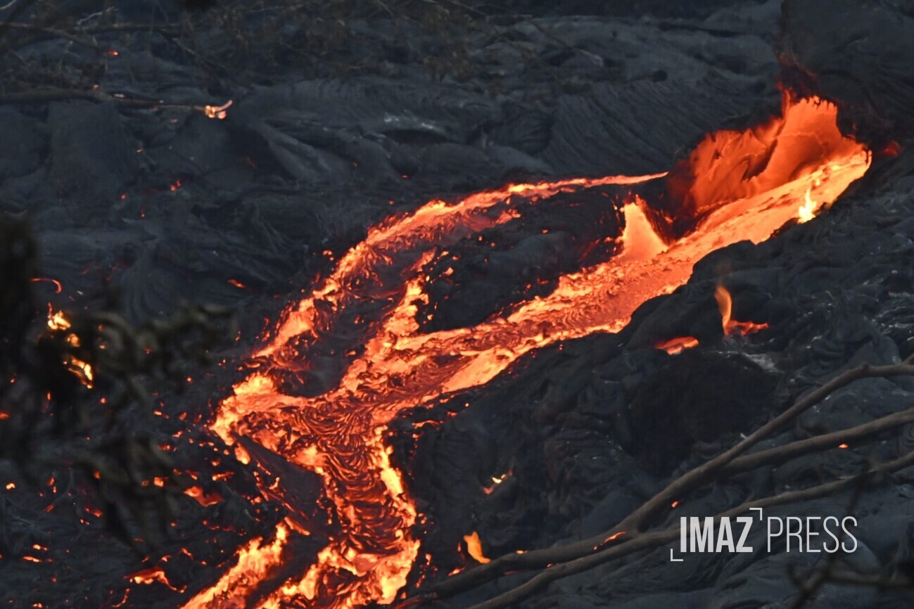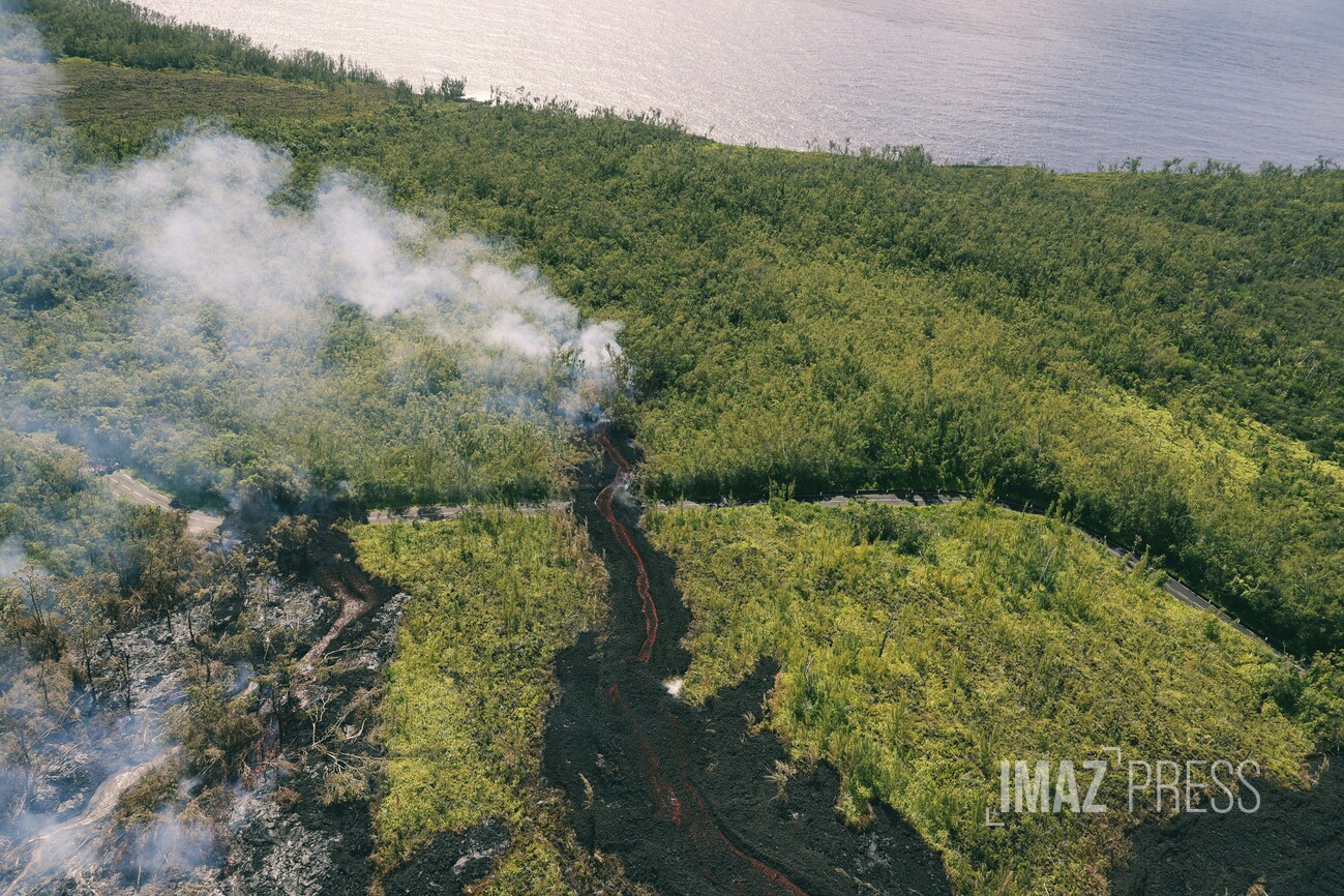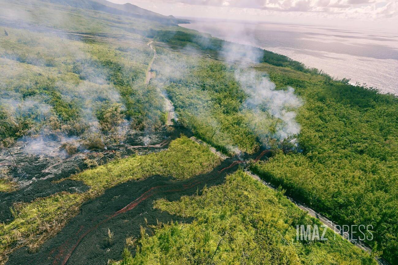Vers 15h la coulée du milieu était la plus avancée et se trouvait à environ 600 mètres de l'océan.