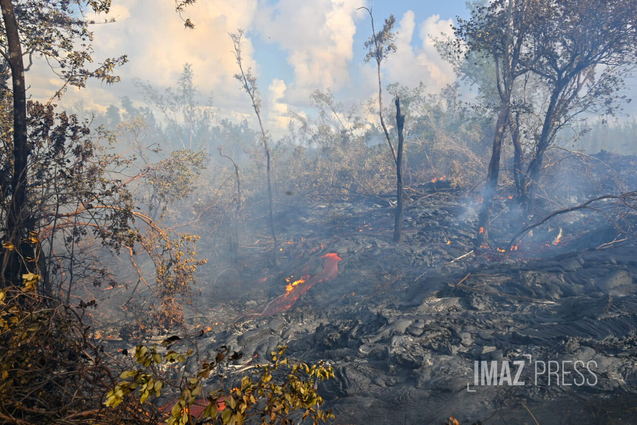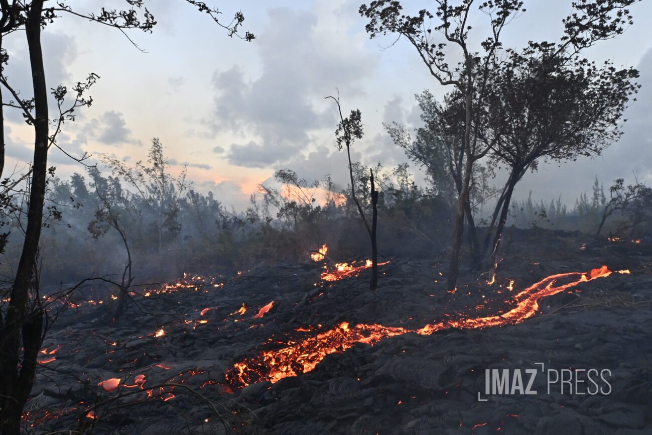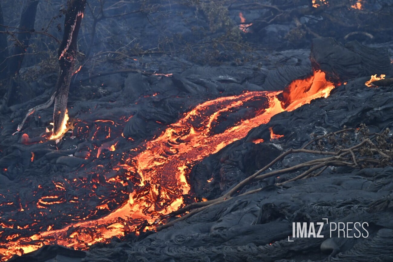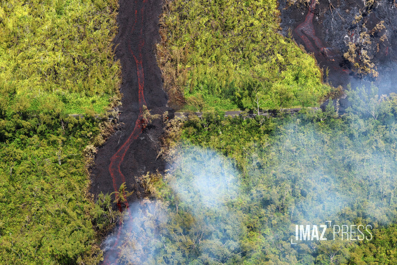 Vers 15h la coulée du milieu était la plus avancée et se trouvait à environ 600 mètres de l'océan.