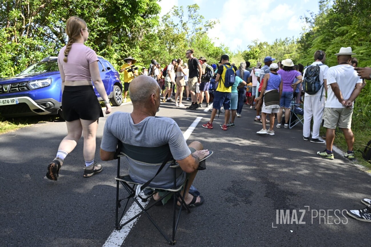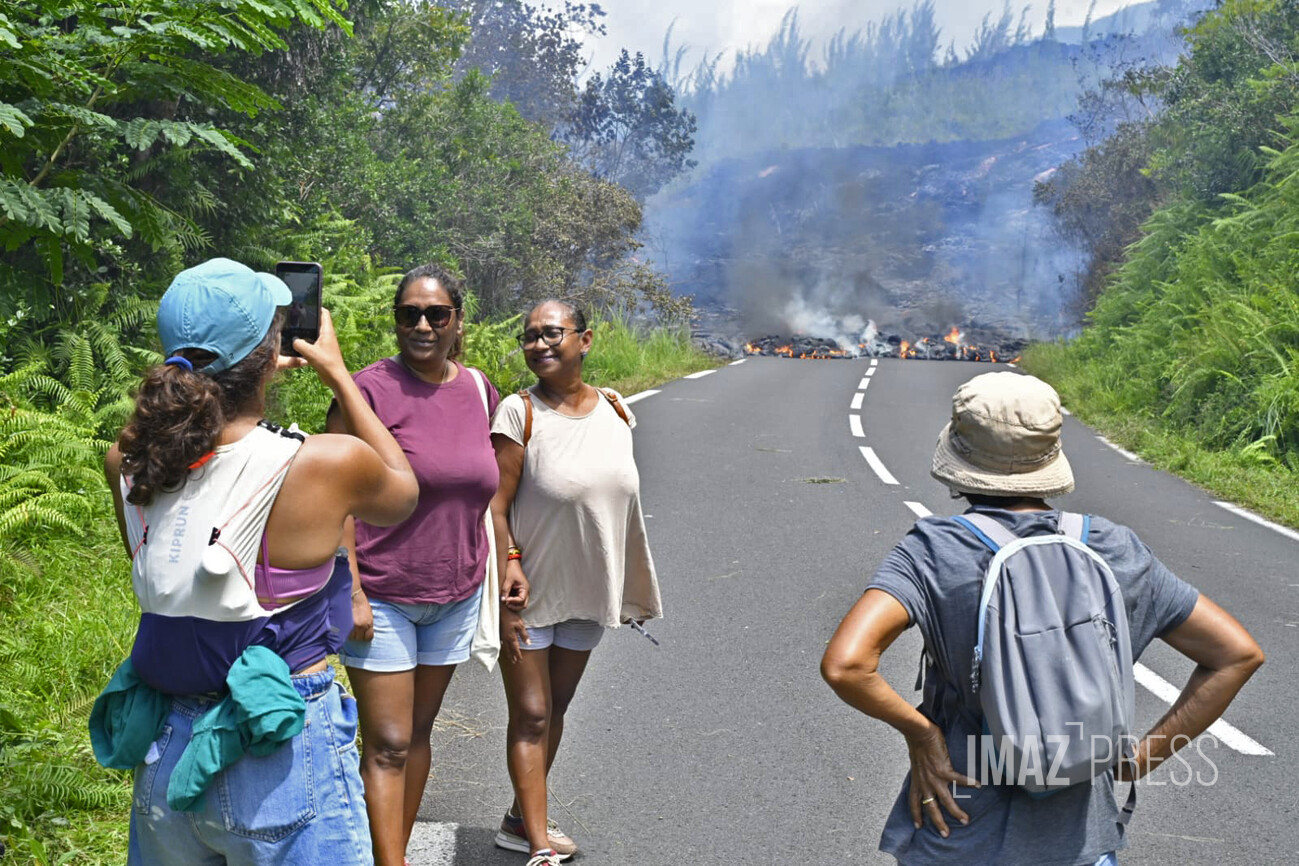 Dès l'annonce d'une possible traversée de la route par la lave, de nombreuses personnes, ont commencé à se rendre à proximité du site de la coulée. Regardez.