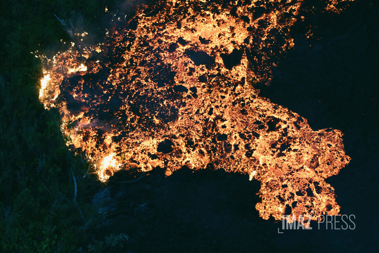 C'est fait, vers 8h10, la coulée de lave est entrée sur la RN2 et a traversé la voie de circulation. C'est la coulée la plus au nord qui a franchi le bitume après l’avoir frôlé pendant plus de deux heures. La coulée plus au sud ne n'a pas encore touché terre, sa progression est extrêmement lente. "Elle est de l'ordre de quelques centimètres par heure", précise à Imaz Press Nicolas Villeneuve, maître de conférences à l'Université. C'est la première fois depuis 2007 qu'une coulée de lave traverse la RN2. Pour rappel, le Piton de la Fournaise est en éruption depuis le 13 février. Suivez notre direct (Photos Richard Bouhet / Emmanuel Grondin / Mon Ami / www.imazpress.com)