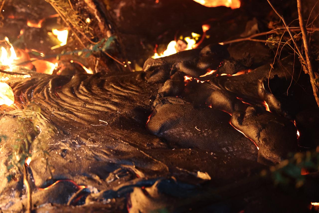 La situation a donc évolué par rapport à ce qui avait été observé en milieu de soirée ce jeudi. La coulée de lave progressait alors de manière irrégulière. Le front de coulé avançait vers la route, se figeait, repartait. Cette "indécision" faisait écrire aux autorités : "la progression est toujours sous surveillance. Rien n’indique qu'elle puisse atteindre la route nationale dans les prochaines minutes ou heures", précisaient alors les autorités.