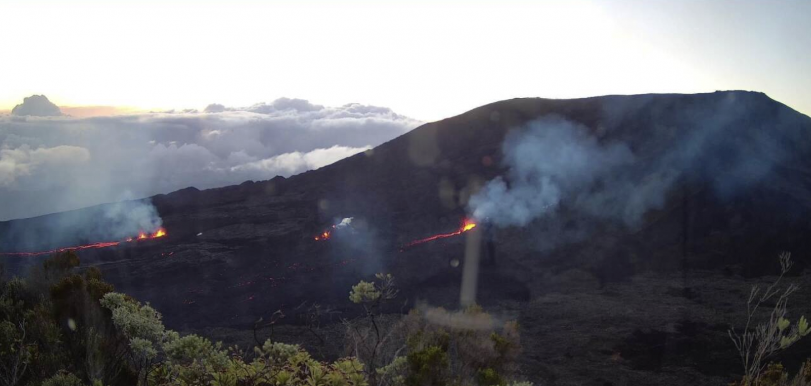 "Après l’ouverture d’une première fissure entre 19h45 et 19h48 heure locale, trois autres fissures se sont formées dont deux en aval de la première entre 20h33 et 20h48. Une quatrième fissure s’est ouverte plus en amont vers 20h54" a indiqué l'OVPF dimanche dans la soirée.