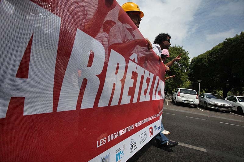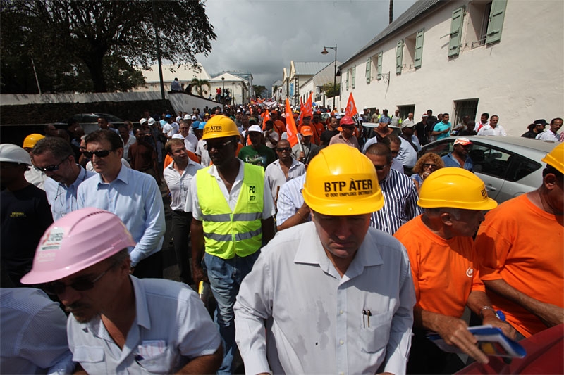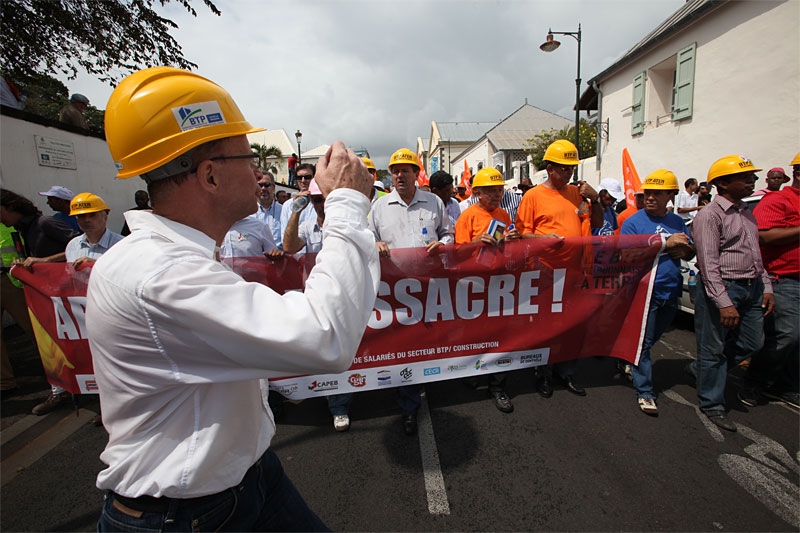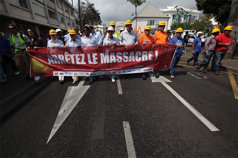 Rappelons que cette manifestation unitaire du BTP est une première à La Réunion. Représentant 18 organisations, un millier de personnes a manifesté dans les rues de Saint-Denis ce vendredi 9 septembre 2010. Tous les corps de métiers du bâtiment et travaux publics (BTP) étaient dans la rue. En début de défilé, l'évêque, Monseigneur Aubry a apporté son soutien aux manifestants.