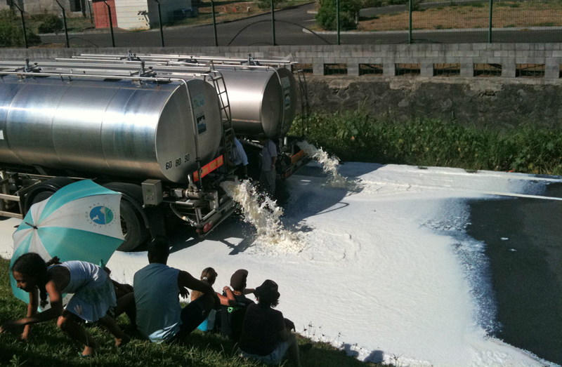 Le lait a été déversé sur la chaussée arrosant au passage les fourgons des gendarmes de faction devant la centrale thermique. Par mesure de sécurité, la direction des routes a ensuite pris la décision de fermer à la circulation à proximité de la centrale.Les producteurs de la Sicalait ont été rejoints par d'autres agriculteurs pénalisés par le manque d'eau. En effet, les pompes électriques alimentant les différents réseaux de distribution d'eau ne pouvant fonctionner en raison de courants, les usagers sont privés du précieux liquide.