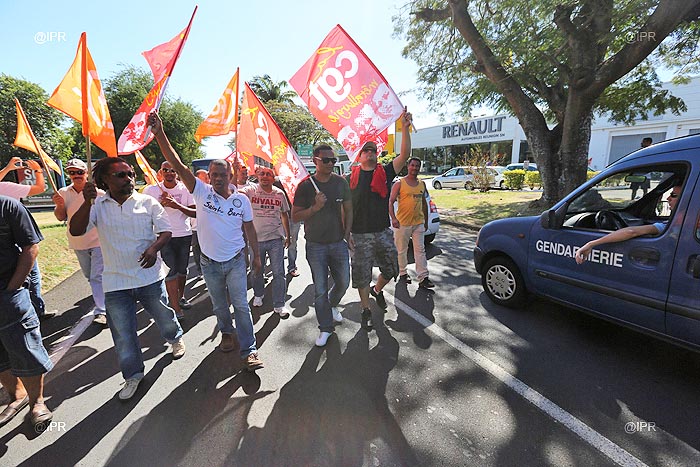 Vers 11 heures 40 ce mardi 11 juin 2013, les salariés grévistes d'Automobiles Réunion (Renault) du Port, Saint-Paul et Saint-Denis ont entamé une marche de protestation vers le rond-point Cadjee au Chaudron. Ces derniers regagneront ensuite la concession automobile. Ils défilent sur un côté de la chaussée. Ce qui perturbe la circulation dans le secteur. Les grévistes protestent contre l'échec des NAO (négociations annuelles obligatoires).