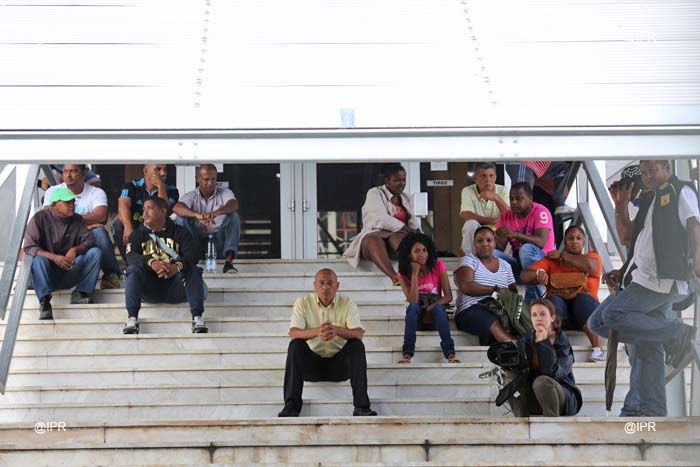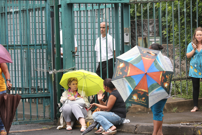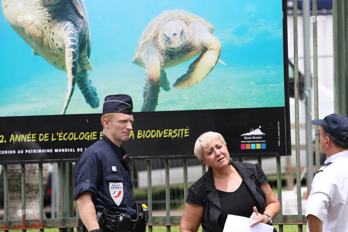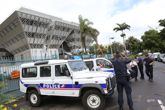 * 12h45 : Pierrette Gunther-Saes, commissaire divisionnaire, directrice départementale de la sécurité publique, est arrivée à la Région. Un référé en justice vient d'être pris pour demander le rétablissement de la libre circulation aux abords et dans l'enceinte du conseil régional. On se dirige donc vers une évacuation des membres du collectif des emplois verts. Une quinzaine d'entre eux a investi la pyramide inversée vers 11 heures. Les forces de l'ordre ont averti Jean-Hugues Ratenon, président de l'ARCP et soutien du collectif, du référé qui a été pris. Il a été proposé aux membres du collectif de libérer l'enceinte et les accès de la Région de leur propre volonté. Ces derniers se concertent. Rappelons qu'ils sont mobilisés devant la collectivité depuis 8 heures ce matin.