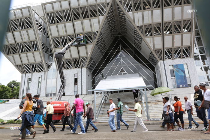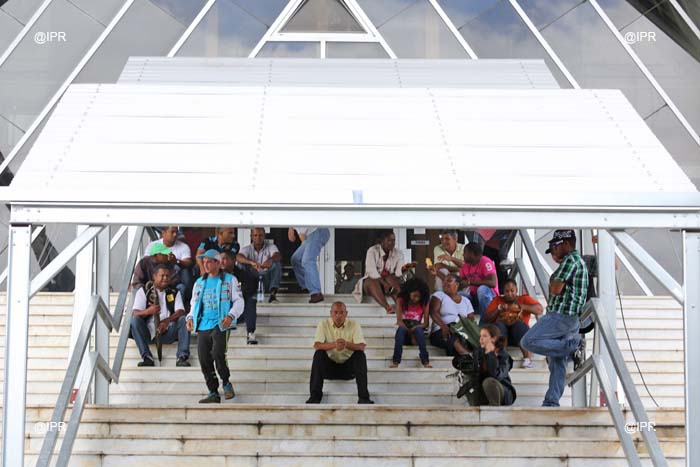 * 11 heures 05 : une quinzaine de membres du collectif Emplois verts en danger, soutenus par l'ARCP (alliance des Réunionnais contre la pauvreté) de Jean-Hugues Ratenon a pu pénétrer dans l'enceinte de la Région, par une entrée située sur le côté et à proximité d'un chantier. Ces derniers se sont installés sur les marches de la pyramide inversée, où ils patientent dans le calme. Pour rappel, les membres du collectif sont mobilisés devant la collectivité depuis ce matin. Ils demandent à être reçus.
