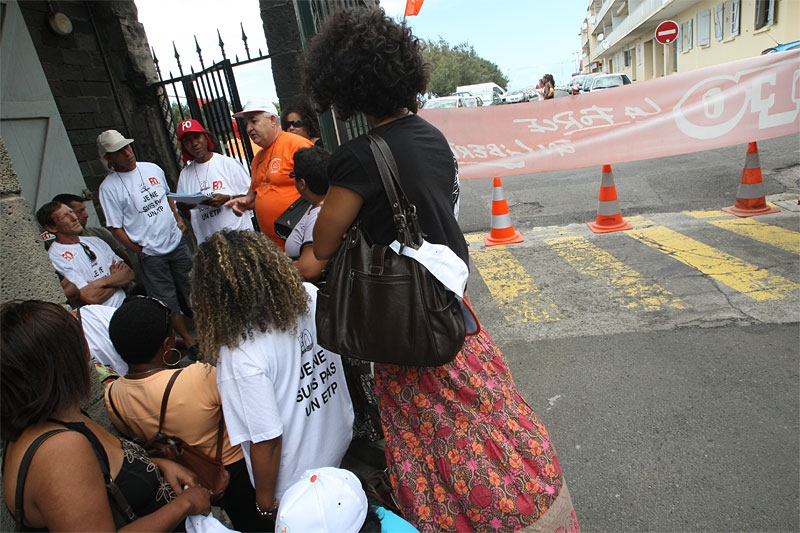Les salariés de la DDE (direction départementale de l'Équipement) sont en grève ce jeudi 19 novembre 2009. Soutenus par leur intersyndicale (CGTR, CFDT, FO, UNSA), ils sont rassemblés devant les locaux de la direction à Saint-Denis. Ils réclament de meilleures conditions de travail et notamment l'arrêt du transfert de la fonction publique d'État à la fonction publique territoriale. Les salariés ont prévu de reprendre le travail ce vendredi matin.