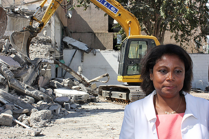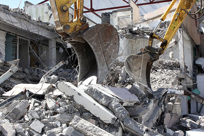 Monique Orphée, députée de la 6ème circonscription, Ronan Boillot, sous-préfet à la cohésion sociale, Gérald Maillot, le 1er adjoint de la Ville de Saint-Denis et un représentant de la SHLMR ont assisté aux premiers coups de pelle de la déconstruction. L’occasion pour Monique Orphée de déclarer qu’elle interviendra prochainement à l’assemblée nationale pour demander que des mesures plus sévères soient prises à l’encontre des marchands de sommeil.