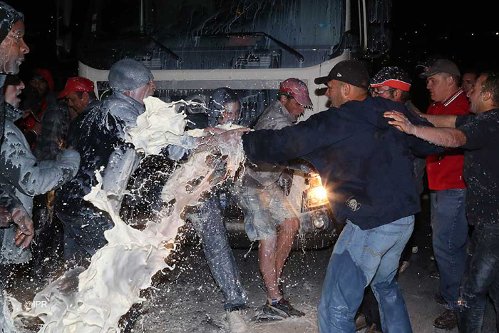 Des travailleurs grévistes qui s'attaquent aux grévistes, des éleveurs qui s'attaquent aux grévistes, des dizaines de milliers de litres jetés, des insultes proférées, des coups échangées et des Directions, à l'abri dans ses bureaux ou derrière les camions des éleveurs, qui refusent toutes discussions : cherchez l'erreur !