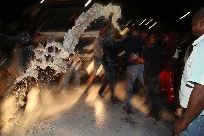Si les grévistes de la Cilam ont vécu une journée assez tranquille ce samedi 5 juillet 2014, la soirée a été beaucoup plus animée. Après avoir mis la pression pendant des heures devant les grilles de l'usine, les éleveurs laitiers sont passés à l'action et ont tenté de forcer les entrées vers 21 heures. Du lait a été déversé sur les salariés en grève, et des coups ont été échangés. La production laitière contenue dans les camions a également été répandue sur la voie publique. Depuis, la tension est quelque peu retombée entre les deux parties, mais le climat n'a jamais été aussi tendu autour du site de la Ligne Paradis. "Nous sommes plus que déterminés : nous allons faire rentrer nos camions. Que ça casse ou que ça passe, ils vont rentrer", avait prévenu Laurent Boyer, producteur de la Plaine des Cafres.
