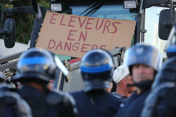 17h30 : reprise des négociations. Entre-temps, les forces de l'ordre ont doublé le cordon de sécurité pour contenir les éleveurs toujours postés en contre-bas.