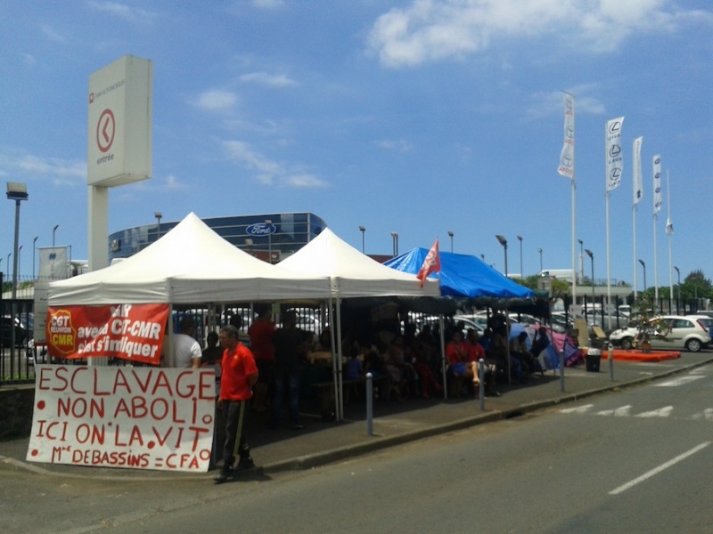 Après 40 jours de grève, les salariés de Citroën sont toujours mobilisés devant le portail de l'entreprise à Sainte-Clotilde. Ce samedi 28 décembre 2013, les familles sont venues apporter leur soutien aux grévistes. Une aide bienvenue alors que certains ont passé Noël devant les grilles de la concession CMM. Le mot d'ordre est plus que jamais le même : nou tiento, nou larg pa. Après avoir rencontré le directeur du cabinet du préfet ce lundi 23 décembre, une commission de conflit devrait être mise en place par la préfecture dans les jours à venir, a annoncé Sébastien Faconnier, secrétaire général adjoint du syndicat de la CGTR-CMR.