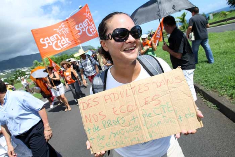 À l'appel de l'intersyndicale de l'éducation nationale, des fédérations de parents d'élèves ainsi que des coordinations étudiantes et lycéennes, 500 personnes manifestent à Saint-Denis ce vendredi 25 février 2011. Ils protestent contre la suppression annoncée de 162 postes dans l'Académie dès la prochaine rentrée scolaire. Malgré la faible mobilisation, les dirigeants se déclarent "satisfait". Il faut remarquer que "les enseignants des lycées professionnels sont présents en masse. Ce sont ces établissements qui sont principalement visés par la suppression de postes". À 11h, les manifestants se dirigeaient vers le rectorat où une délégation sera reçue par le recteur.