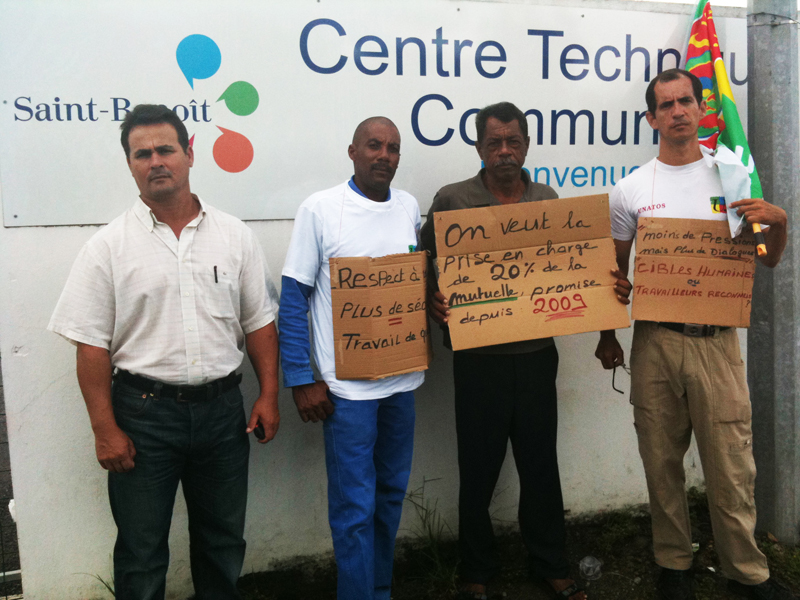 Une dizaine d'employés du centre technique communal de Saint-Benoît ont débrayé ce lundi matin, 14 mars 2011, pour protester contre "le manque d'hygiène et de sécurité" dans les locaux. Un débrayage en guise d'avertissement, confient les salariés. "Si rien n'est fait pour améliorer la situation, nous entrerons en grève illimité", promettent-ils.