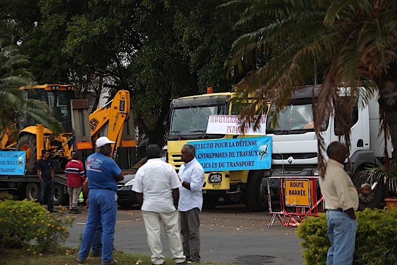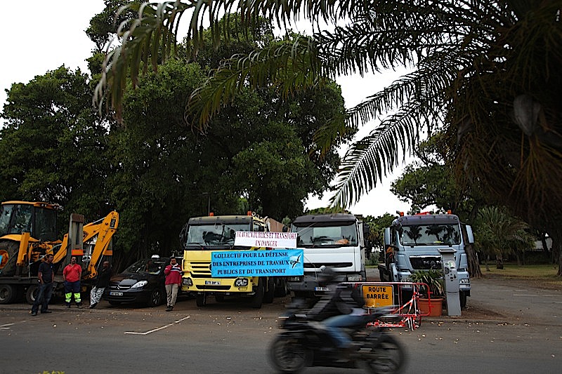 Une quinzaine de camions est stationnée devant la préfecture depuis tôt ce mercredi matin 22 septembre 2010. Les transporteurs spécialisés dans les transports de matériaux pour le BTP (bâtiment et travaux publics) se sont rassemblés à l'appel du collectif pour la défense des entreprises de travaux publics et des transports. Comme ils l'avaient annoncé ce mardi soir, les transporteurs n'ont pas bloqué les routes. Vers 8 heures 30 indique Gismy Viraye, vice président du collectif, indiquait : "nous attendons que tout le monde arrive pour déposer un courrier à l'attention du Premier ministre concernant le protocole Novelli. Il manque encore une vingtaine de camions".