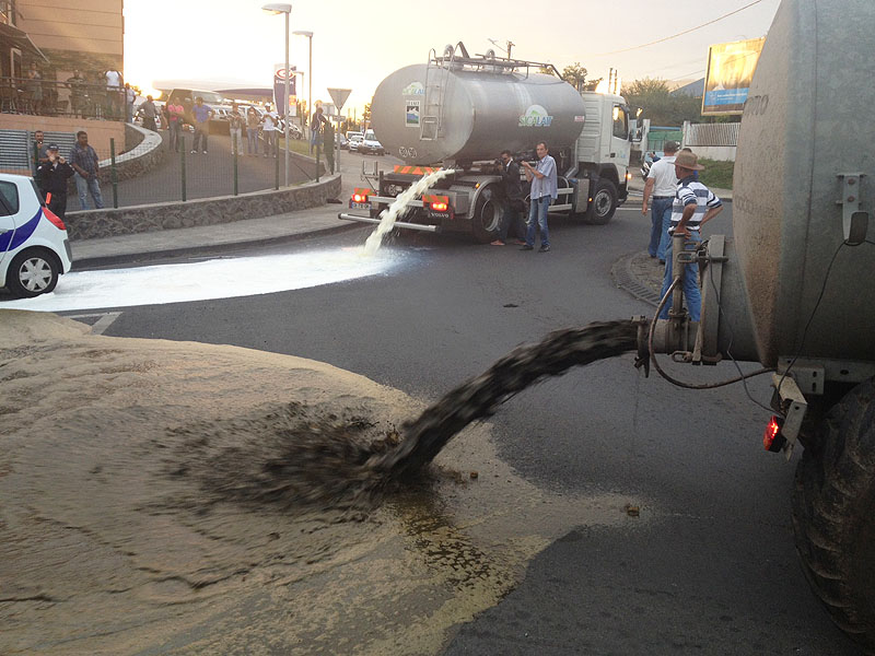 Ce qui n’a pas manqué d’agacer les producteurs de lait, mobilisés depuis hier mardi près de la CILAM dans la zone industrielle à Saint-Pierre. En colère, ils réclament la levée du blocage afin de pouvoir livrer leur lait. Depuis le blocage de l'usine par les grévistes, ils sont, en effet, obligés de jeter toute leur production. Les pertes sont estimées à plus de 250 000 litres. "Il y a ras-le-bol de voir que rien ne débouche. Si demain la situation n'est pas débloquée, ce n'est pas une, ni deux, mais plusieurs dizaines de tonnes de lisier qui seront déversées", prévient un éleveur de la Plaine des Cafres.
