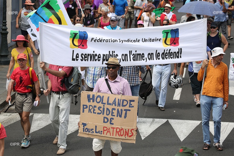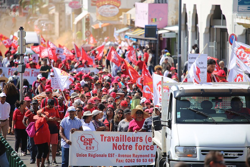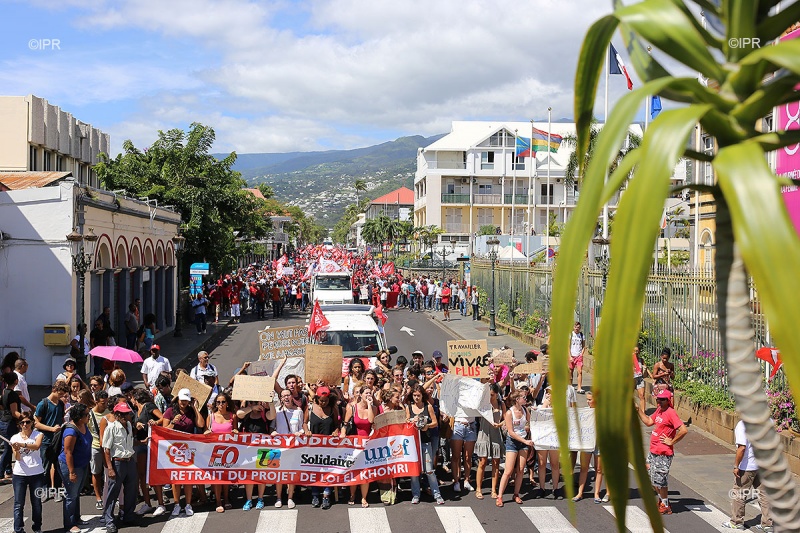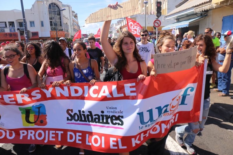 Des milliers de personnes sont descendues dans la rue à Saint-Denis et à Saint-Pierre ce jeudi matin 31 mars 2016 pour protester contre le projet de réforme du code du travail présentée Myriam El Khomri, ministre du Travail. L'appel à la mobilisation lancée par l'intersyndicale a été aussi suivi par des étudiants et des lycéens.