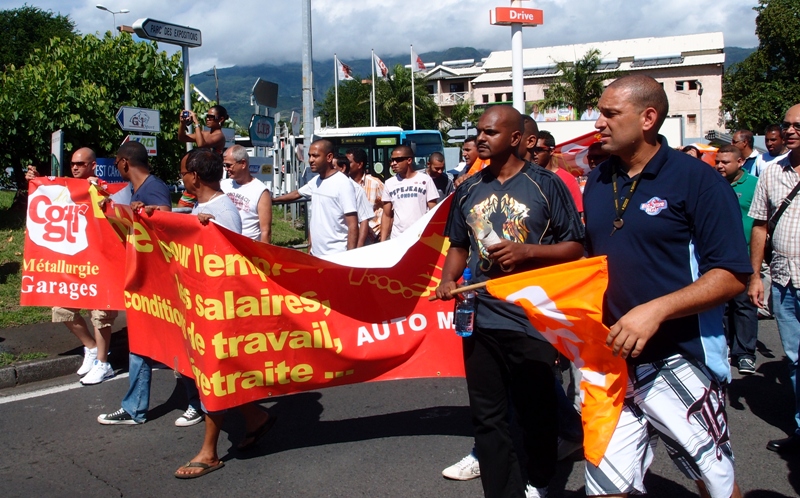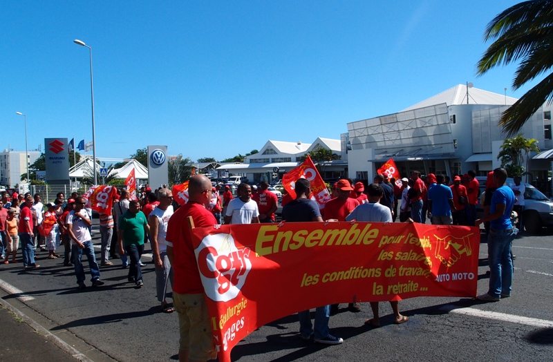 Le mouvement de grève dans le secteur automobile se poursuit ce mardi 24 avril 2012. Ils étaient près de 200 à se réunir ce matin à Saint-Denis à l'appel de la CGTR, de la CFDT et de la CFTC, pour manifester, en bloquant par moment la circulation, notamment dans le rond-point du Chaudron, près de Cotrans. Les grévistes protestent contre la réécriture de la convention collective régionale dans la filière automobile. Ils se sont ensuite dirigés vers la Sogecore, où ils ont été reçus aux alentours de midi. "On a eu des avancées avec le président des patrons de l'automobile, mais le point noir reste la définition des salaires de référence sur laquelle on n'est pas d'accord, donc le mouvement se poursuit", a annoncé Jacques Bughon, secrétaire général de la CGTR auto-moto.