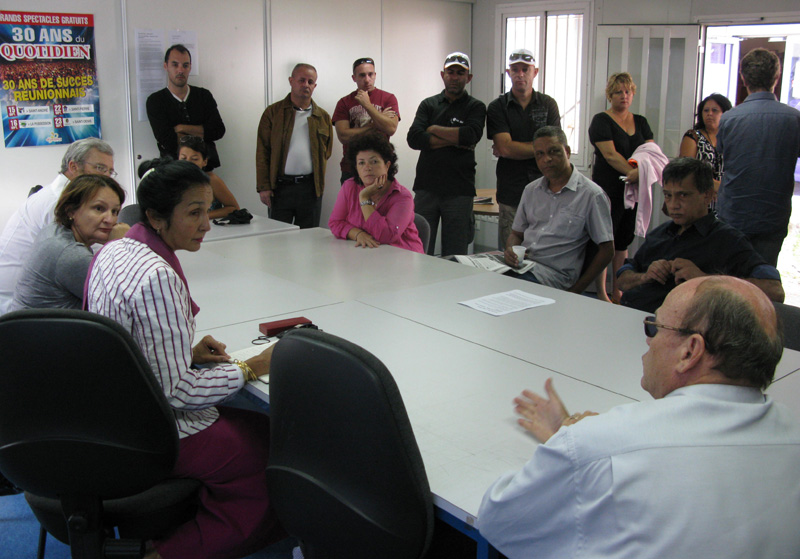 "La direction va se pencher sur la grille des salaires des employés de presse", a annoncé Yannick Bernardeau, porte-parole de l'intersyndicale CFDT-CFE/CGTR-CGC-SNJ, à l'issue du comité d'entreprise extraordinaire qui s'est tenu ce mardi 20 juillet 2010 au siège du Quotidien où 80% du personnel (journalistes, annonces classées, régie pub) sont en grève depuis le 12 juillet dernier. Cette rencontre a été suivie d'une assemblée générale des manifestants. "La poursuite de la grève a été votée à l'unanimité", indique un représentant du personnel. A noter que la député-maire de Saint-Paul, Huguette Bello, a rendu visite aux grévistes ce matin pour leur apporter son soutien. "Il faut que le Quotidien continue à vivre", a t-elle lancé.
