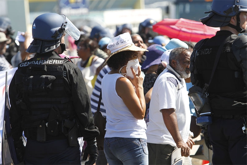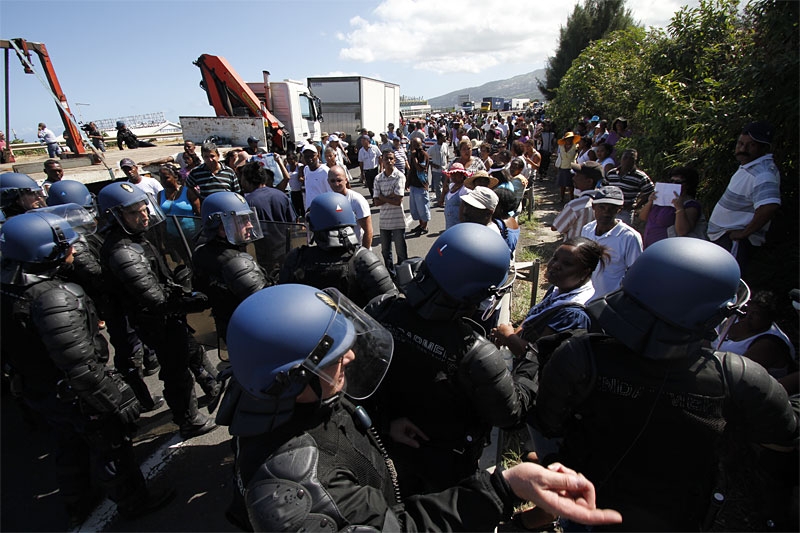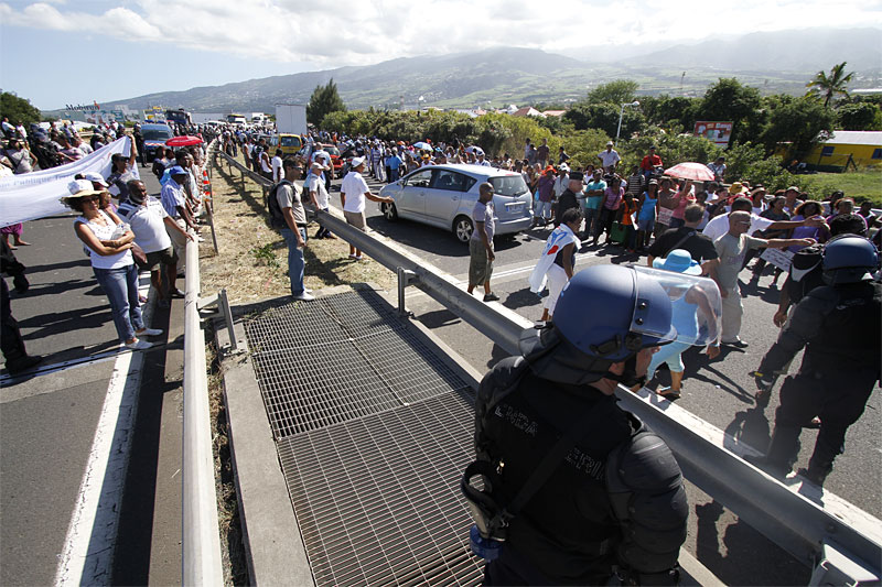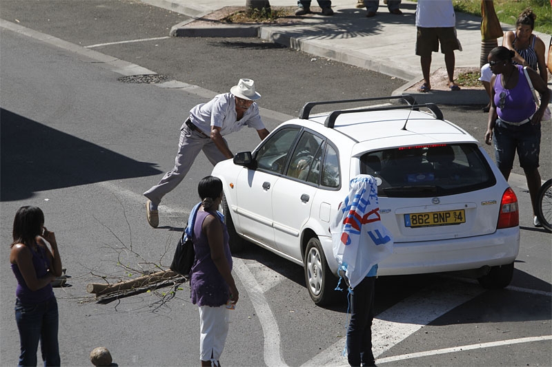 Deux râlés poussés se sont produits avec les forces de l'ordre vers 8h15 devant la mairie et au rond-point de la RN5 route de Cilaos après 9h30.