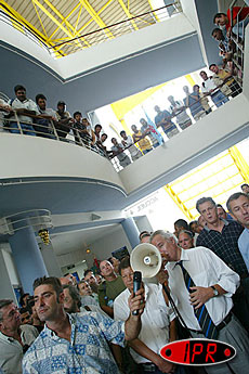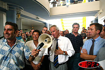 En début d'après-midi, le recteur Christian Duverger, rencontrait les représentants de l'intersyndicale. À l'issue d'un entretien de trois quarts d'heure, il s'adressait brièvement aux grévistes réunis dans le hall du bâtiment. "Le recteur que je suis ne peut rester insensible aux marques d'attachement que vous manifestez vis-à-vis du service public" disait-il avait de souligner "il est vrai que la situation est difficile dans la mesure ou l'absence de concertation avant l'annonce du projet de transfert nous a démunie de notre pratique habituelle de dialogue". Dès lors, c'est devant un auditoire conquis qu'il poursuivait , "il y a un déficit évident de communication, nous avons à construire ensemble un dialogue pour faire bouger le dossier et je suis votre relais auprès du ministre pour protéger le service public".