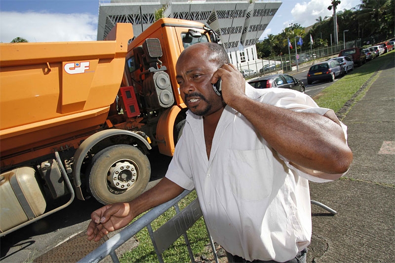 Hermann Élise a stationné l'un de ses camions devant la pyramide inversée dès ce vendredi après-midi "pour que l'on ne puisse pas me dire que je m'y suis pris trop tard". C'est en effet, ce lundi 31 mai que se termine le sursis accordé à la Région par Tram Tiss pour le lancement du chantier. Le groupement attributaire du marché avait donné ce délai supplémentaire à la collectivité régionale afin qu'elle obtienne du gouvernement une dotation supplémentaire de 80 millions d'euros par an. L'intersyndicale du BTP, Éric Magamootoo, président de la chambre de commerce et maintenant Hermann Élise exhortent Didier Robert "à tout faire pour que le sursis soit prolongé de trois mois" et à "faire en sorte que le projet tram train soit réalisé afin de ne pas aggraver encore la crise économique".