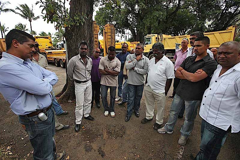 Une quinzaine de camions et une trentaine de transporteurs s'étaient rassemblés devant la préfecture tôt ce mercredi matin 22 septembre 2010. Ils ont été reçus par la directrice adjointe du cabinet du préfet. Une action symbolique où terrassiers et transporteur sont venus déposer un courrier à l'attention du Premier ministre. "Dans ce courrier nous demandons à François Fillon d'accélérer la mise en place de l'amendement au protocole Novelli", indique Bruno Vidois, président délégué de l'action syndicale des entreprises réunionnaise (LASER). "Cet amendement peut nous donner une bouffée d'oxygène puisqu'il prévoit cette fois-ci l'étalement de la dette de la part salariale des cotisations sociales pendant minimum trois ans", souligne Armand Mouniata, président du collectifpour la défense des entreprises de travaux publics et des transports.