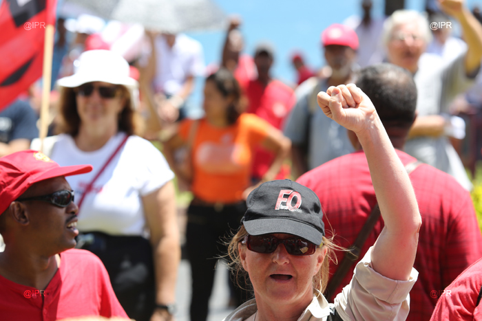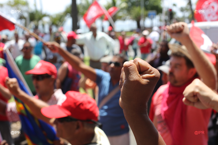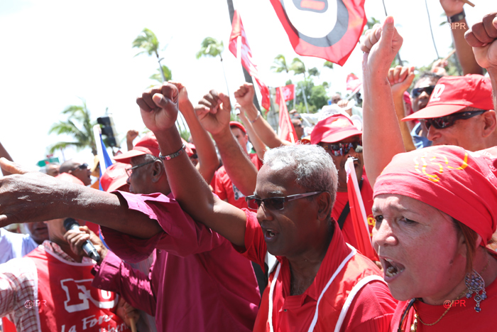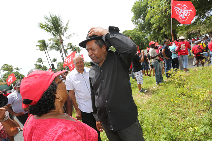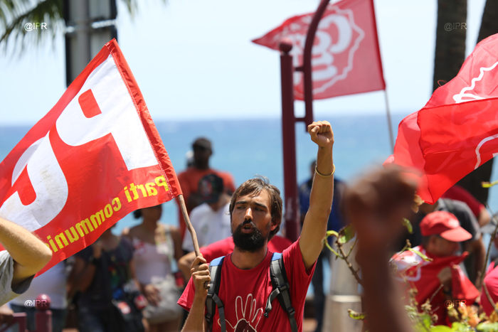 * 11 heures 20 : les manifestants partis du Jardin de l'Etat à Saint-Denis à 10h30 pour dire non à l'accord sur la sécurisation de l'emploi, sont arrivés devant la préfecture, où une motion doit être déposée. Leurs rangs ont grossi, ils sont désormais près de 1 000 manifestants à être réunis. A noter également la présence de Jean-Hugues Ratenon, président de l'ARCP (alliance des Réunionnais contre la pauvreté), de Jean-Hugues Savigny, du Parti de Gauche, et de représentants du PCR (parti communiste réunionnais), tels que Elie Hoarau ou Yvan Dejean.