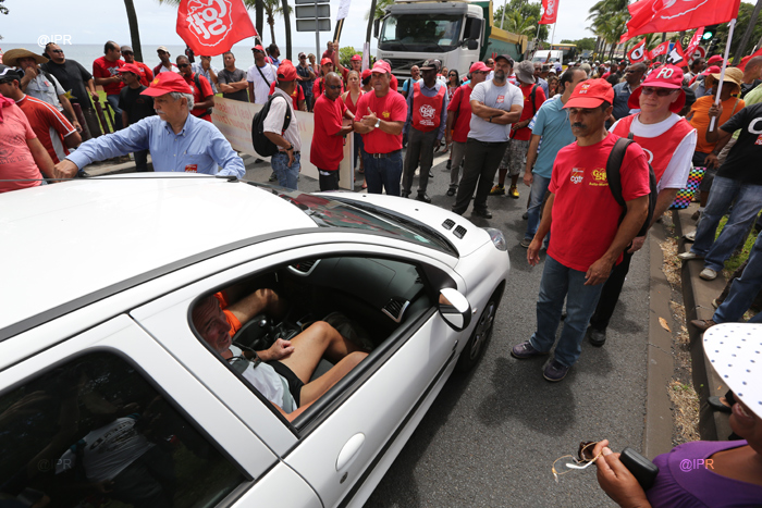 * 12 heures : une délégation de l'intersyndicale a été reçue en préfecture. Une motion doit être remise. Pendant ce temps, à l'extérieur, les manifestants bloquent toujours la circulation au Barachois à Saint-Denis, en face de la préfecture. Ils attendent que la délégation ressorte afin de libérer les voies.