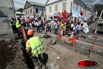Localement l'intersyndicale a relayé le mot d'ordre de grève lancé au niveau national par les syndicats de l'enseignement. "Cela explique qu'il n'y ait pas plus de monde dans la rue. Les mots d'ordre de grève nationaux ne sont jamais suivis en masse à La Réunion" commente Patrick Corré du SGPEN-CGTR. "Nous sommes 500 à Saint-Denis et tout autant à Saint-Pierre où à lieu une manifestation pour les mêmes revendications. Globalement, la mobilisation est satisfaisante" estime pour sa part Éric Soret, porte-parole de l'intersyndicale."Na essayé" et "Baster"