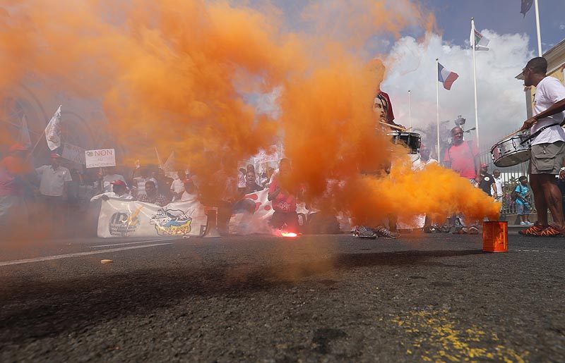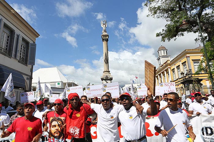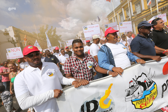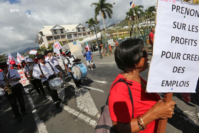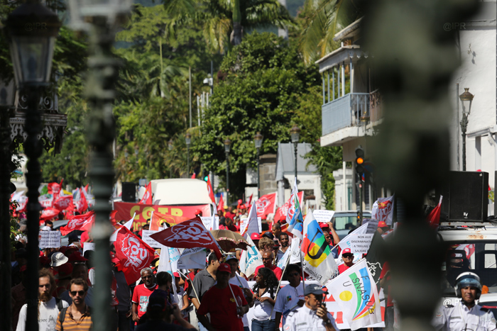 C’est avec plus d’une heure de retard que les manifestants ont pris le départ du jardin de l’État à Saint-Denis vers 11 heures. Scandant "Nous tienbo, nou larg’ pa" ou encore "pas né pour subir", le cortège d’environ un millier de personnes, qui ont répondu à l’appel de la CGTR, de l’UNEF, de la FSU et du SAIPER, a ensuite sillonné la rue de Paris. Dans le cortège, des personnalités comme la députée-maire de Saint-Paul Huguette Bello, l'élu saint-paulois Jean-Marc Gamarus, l'ancien maire de Cilaos Jacques Técher ou encore le maire portois Jean-Yves Langenier et Jean-Hugues Ratenon.