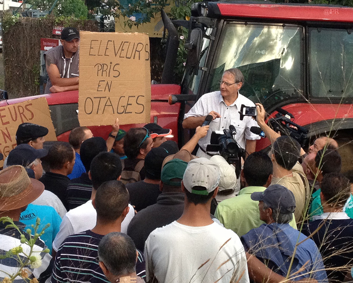 En début de soirée ce mardi 4 juin 2013, les négociations entre la direction de la Cilam (compagnie laitière des Mascareignes) et les salariés grévistes n'ont toujours pas repris. Les trois médiateurs nommés par le sous-préfet de Saint-Pierre sont arrivés sur place. Peu avant cela, Paul Martinel, président directeur général de l'entreprise s'est adressé aux éleveurs présents sur le site à Saint-Pierre. Il a estimé que ces derniers sont "pris en otage". Ce qui a provoqué un regain de tension entre les salariés en grève depuis le mercredi 29 mai et les éleveurs. La police a déployé un important dispositif de sécurité pour empêcher toute confrontation entre les deux groupes.