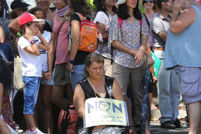 Mobilisés ce mercredi, les manifestants demandent la suspension de la réforme contre les rythmes scolaires. Ils dénoncent, entre autres, une désorganisation générale, un accroissement des inégalités nationales et locales et déplorent une "grande fatigue" des enfants.