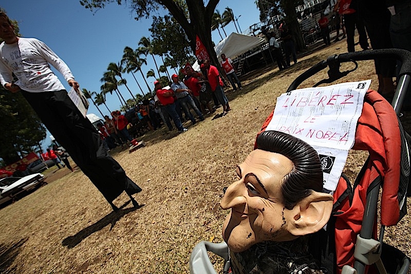 À peine quelques dizaines de personnes se sont rassemblées devant la préfecture à Saint-Denis ce samedi 6 novembre 2010. À l'appel de l'intersyndicale CGTR, CFTC, FO, CGC, CFDT, UNSA, FSU, Solidaires, Unef, UNL , les manifestants protestaient pour la 8ème fois depuis la mi juin contre la réforme des retraites. "C'est vrai que nous ne sommes pas nombreux ce matin, mais notre détermination ne faiblit pas. Cette réforme est mauvaise et ce n'est pas parce que le Parlement l'a adoptée qu'elle est moins mauvaise" a commenté Jean-Pierre Rivière, dirigeant de la CFDT.