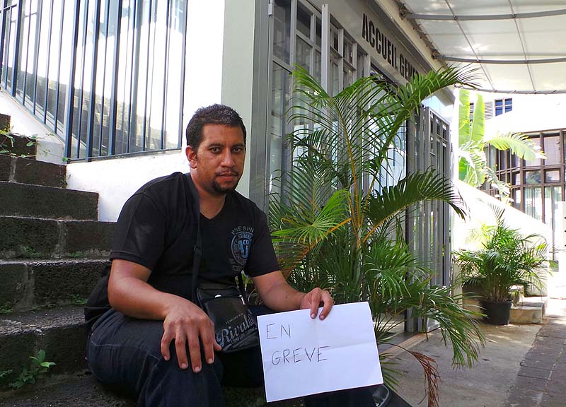 En début d'après-midi, Ludovic Grondin, un jeune homme de 23 ans sans emploi, originaire de Sainte-Marie, s'est mis brièvement en grève de la faim devant les locaux du service de réglementation de la préfecture à Saint-Denis. En cause : sa demande de carte d'identité qui n'a pas été traitée dans les temps. "Je devais m'envoler pour la métropole ce samedi 23février pour une formation. Faute de carte d'identité, je ne pourrais pas suivre cette formation", déplore le jeune homme. 20 minutes après l'annonce de sa grève de la fin, il a finalement obtenu l'assurance qu'un passeport lui serait délivré en urgence sans frais supplémentaires