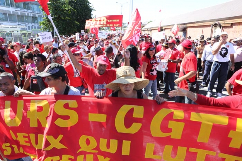 3 000 personnes ont manifesté dans les rues de Saint-Pierre ce mardi 1er mai 2012. Les manifestants ont répondu à l'appel de la CGTR, de la CFDT, de l'UNSA, de Solidaires, de la FSU et du Saiper. FO et la CFTC ont choisi de ne pas manifester en signe de protestation contre les propos du Nicolas Sarkozy qui a appelé à un rassemblement pour "la vraie fête du travail" à Paris. "Sarkozy, avek la presyon va lé" a été l'un des principaux slogans scandés dans le défilé