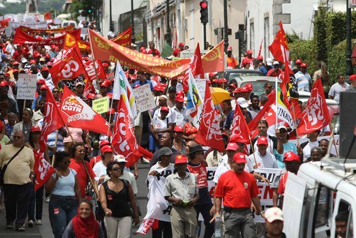 C'est une journée de grogne et de protestation qui est prévue ce mardi 5 mars 2013. Alors que l'intersyndicale (CGTR, FO, FSU) manifestera à Saint-Denis pour montrer son désaccord face à l'accord proposant de nouvelles règles dans le code du travail, l'intersyndicale des professionnels de la route sera reçue en préfecture pour aborder le problème des charges sociales et fiscales des entreprises. La plateforme d'associations du dispositif emplois verts demande également à être reçue ce mardi. Par ailleurs, des mouvements sporadiques, comme ceux qui ont eu lieu ce lundi contre la hausse du prix du gaz à Saint-Benoît ou contre le chômage à Saint-Pierre, ne sont pas à exclure, tant la situation économique et sociale de La Réunion ne cesse de se dégrader. (photo archives manifestation de la CGTR)