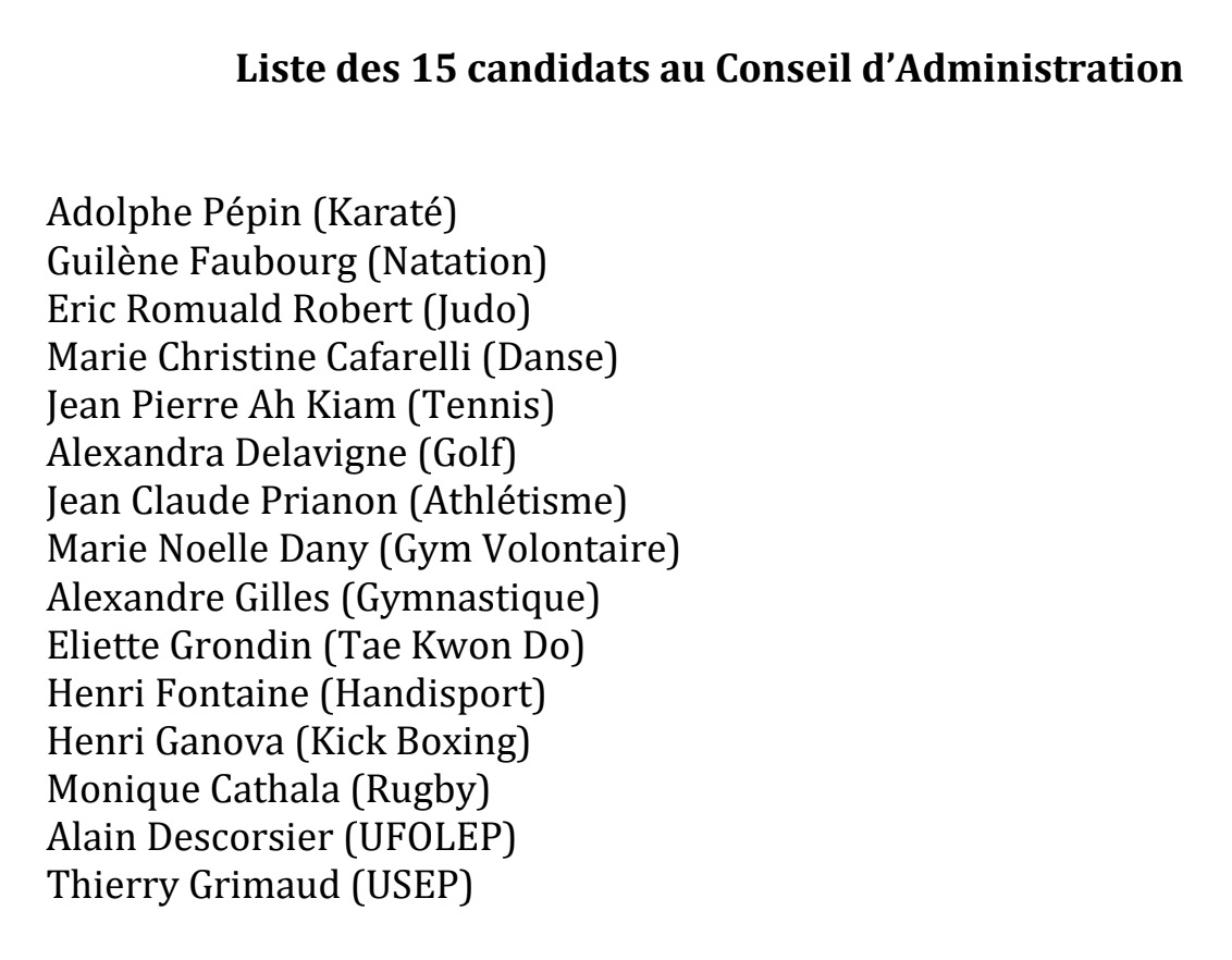 Concernant le scrutin de liste, un changement de mode pour cette élection, Adolphe Pépin a précisé qu'il refusait "de politiser cette élection : le sport doit rester aux sportifs".