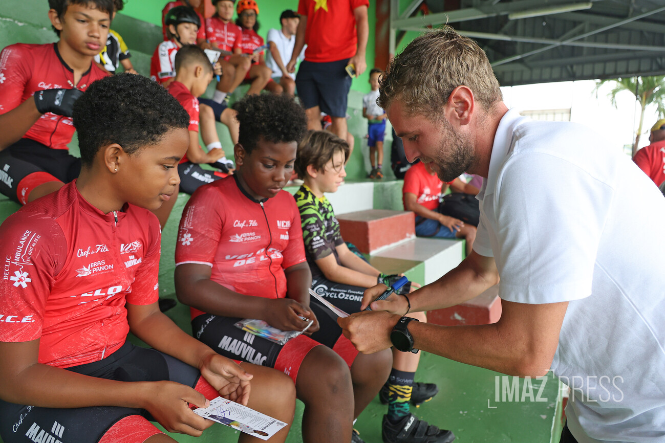 Câest aprĂšs tout dans l'est de l'Ăźle que tout a commencĂ© pour ces cyclistes professionnels. Revenir partager son expĂ©rience avec les marmailles Ă©tait important pour Lorrenzo Manzin.