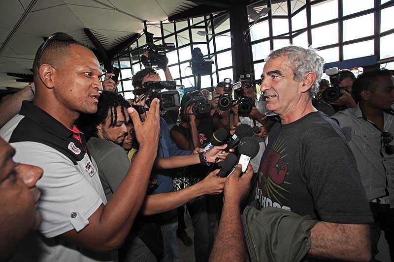 Raymond Domenech, l'ancien entraîneur de l'équipe de France de football, arrive sur l'île ce lundi matin, 14 mars 2011, pour animer un stage avec des marmailles de 8 à 17 ans à l'occasion des "5 jours Foot Pro". Il s'agit de sa deuxième venue sur l'île en moins d'un an, la dernière datant de début juin 2010, lors de la venue des Bleus.