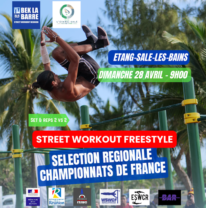 Ce dimanche 28 avril 2024, l'association Bek la barre organise les qualifications régionales pour les championnats de France de Street workout freestyle au parc de l'Etang-Salé. Les deux meilleurs athlètes seront qualifiés pour la finale nationale prévue à Roubaix (Hauts-de-France) le dimanche 2 juin. Nous publions le communiqué de l'association ci-dessous (Photo : rb/www.imazpress.com)